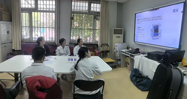 海淀医院呼吸与危重症医学的科侯洪艳主治医师汇报病例在海淀医院救治经过:面对合并多系统疾病的复杂病情,海淀医院呼吸与危重症医学科迅速牵头,整合心内、营养、康复等多学科团队,开展精准诊断与综合治疗。通过气管镜明确病原、无创通气支持、强化气道管理与营养干预,成功稳定患者生命体征。海淀医院呼吸与危重症医学科龚春雨护士长针对痰液引流障碍患者的气道管理及无创呼吸机使用注意事项进行专业的讲解及指导。体现了海淀医院作为区域医疗中心在危重症救治与带教方面的双重引领。